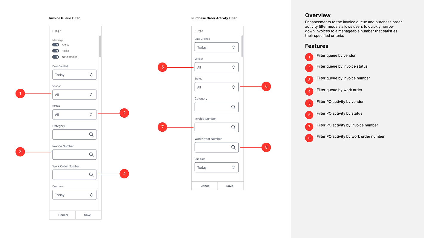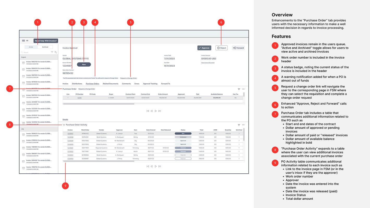Our primary users in supply chain, procurement, and project management needed more visibility, transparency, and better error handling to more effectively manage vendor payments. I designed a solution that adds this functionality to existing enterprise software ensuring minimal cost and development time.